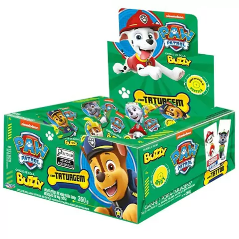 Deliciosos chicletes com tatuagens da Patrulha Canina, no sabor hortelã, oferecem uma experiência super saborosa e divertida para crianças e adultos!