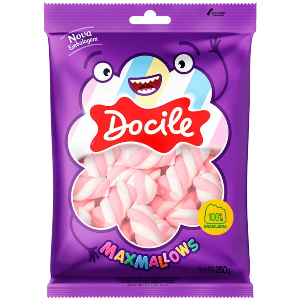 DOCILE MAXMALLOWS TWIST ROSA/BRANCO BAUNILHA 250G