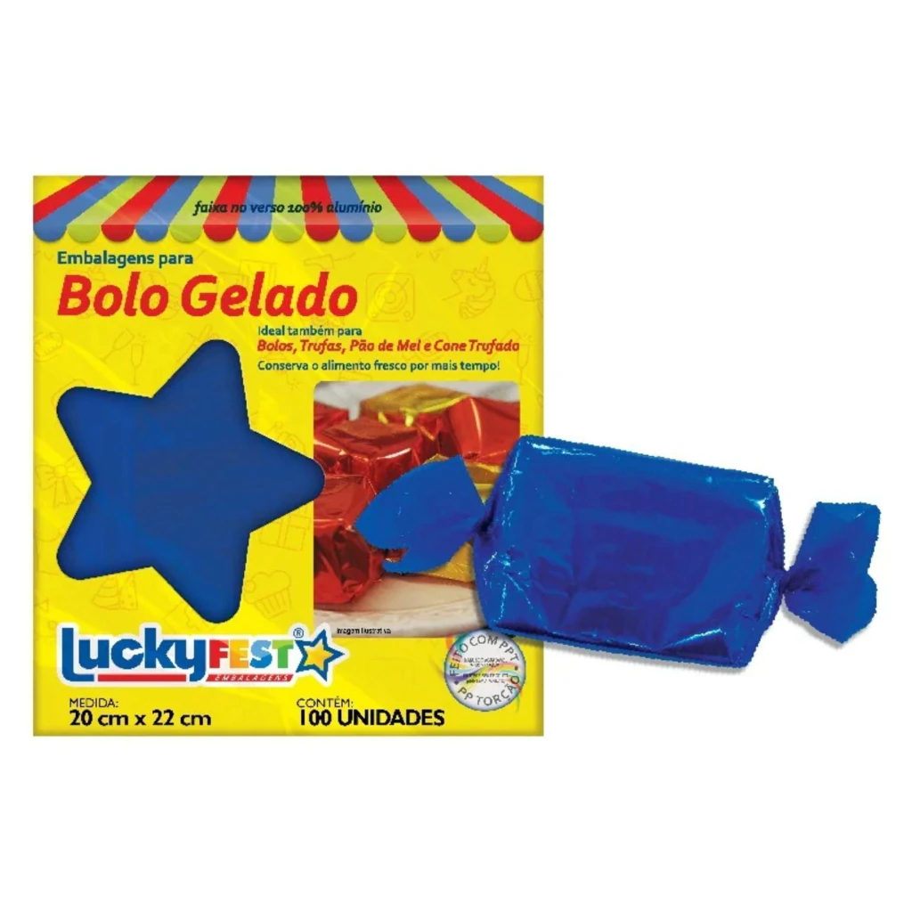 EMBALAGEM BOLO GELADO LUCKYFEST AZUL ESCURO - 20X22 C/ 100 UNID