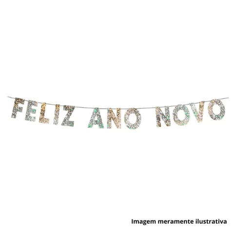 FAIXA FELIZ ANO NOVO HOLOGRAFICA PRATA 01 UN REGINA